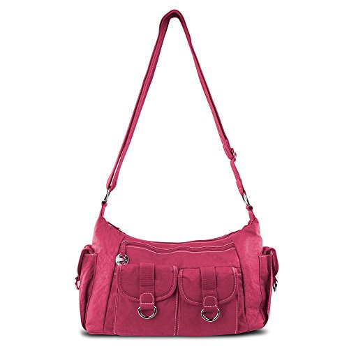 -. Brand : Travelon -. Department : womens -. Feature : Keep all your must-haves organized while running to the store or going on a weekend vacation / Features tons of storage space so you can easily bring everything you need and keep it organized / Spacious main compartment includes a large mesh zippered pocket plus three slip pockets / Front includes an additional zippered pocket plus 4 cargo-style pockets / Rear zippered pocket includes an organizer panel with 4 card slots, 2 slip pockets, and a lipstick slot -. ProductGroup : Shoes -. ProductTypeName : HANDBAG -. Title : Travelon Organizer Hobo Bag with Cargo Pockets Never worry about not having enough room for all your essentials when you carry this Travelon Organizer Hobo Bag With Cargo Pockets. This shoulder bag provides tons of space, making it ideal for a trip to the store or your upcoming vacation. The spacious main compartment has plenty of room for your essentials, plus a large mesh zippered pocket and three slip pockets for organization. The rear then includes a zippered organizer pocket with 4 card slots, 2 slip pockets, and a lipstick slot, while the front includes an additional zippered pocket and 4 cargo-style pockets. It's the perfect bag for staying organized while you're on-the-go.