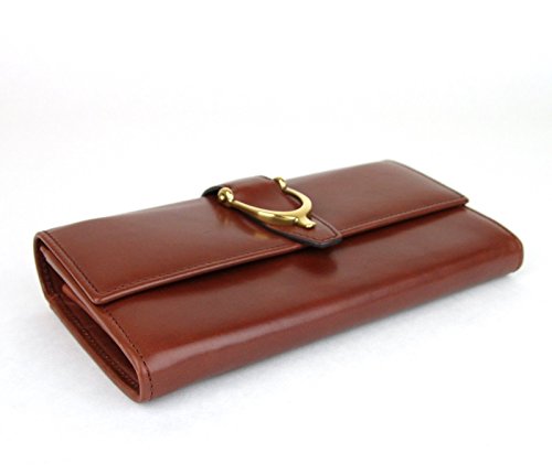 Gucci Brown Leather Spur Detail Clutch Continental Wallet, Materials: Leather, Light fine gold hardware, Snap flap closure, Twelve card slots and two bill compartments, Two separate interior compartments, Zip coin pocket, Measurement (approximately): 7.5"L x 4" H x 1" D, Handbags & Purses. NOTE: There are minor scuffs which will blend in use. Also note that measurements are provided only as a guide and are approximate. Color appearance may vary depending on your computer settings.