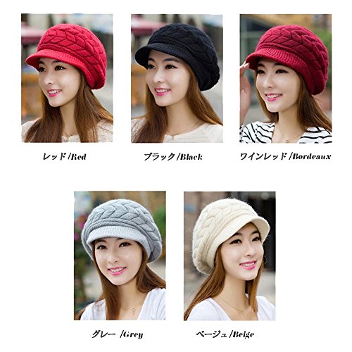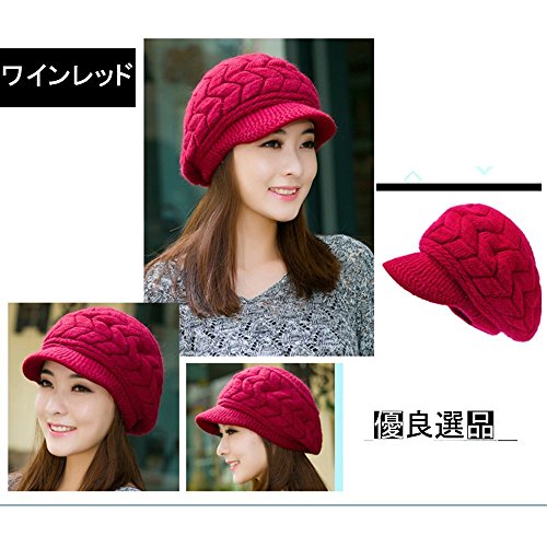 원본상품명: 良品優選 ニット帽 キャスケット 小顔?果 厚手 防寒 帽子 カジュアル 耳まであったか ふわふわレ?ス キッズ ニット帽 全5色 ワインレッド