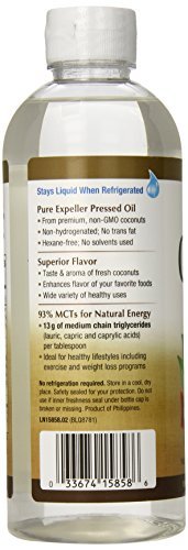 -. Binding : Health and Beauty -. Feature : Good for cooking / Pure & unrefined / Cold pressed / USDA organic -. IsAdultProduct : 0 -. Label : Nature's Way -. Manufacturer : Nature's Way -. ProductGroup : Health and Beauty -. ProductTypeName : HEALTH_PERSONAL_CARE -. Publisher : Nature's Way -. Size : 10 Ounces -. Studio : Nature's Way -. Title : Nature's Way Liquid Coconut Premium Oil 10 oz ( Pack of 3)
