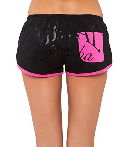 100% cotton jersey, 180 grams, 2" inseam, dolphin short with contrast trim, logo embroidery on front left leg opening, and contrast back pocket with engineered logo screen.
