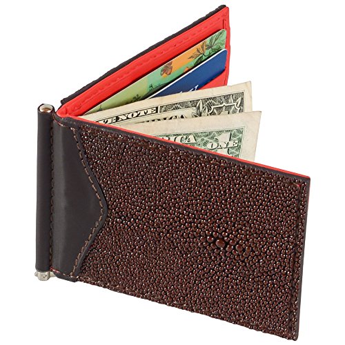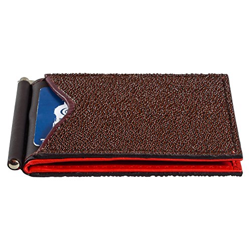 -. Title : Money Clip Wallet, Stingray Leather, ID Holder, 3 CC Slots, Brown