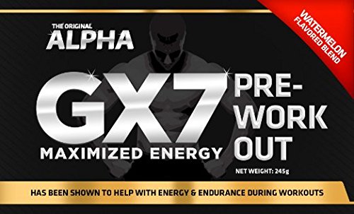 -. Binding : Health and Beauty -. Brand : The Original Alpha -. Feature : Alpha Gx7 PreWorkout - Watermelon Flavor -. Label : The Original Alpha -. Manufacturer : The Original Alpha -. ProductGroup : Health and Beauty -. ProductTypeName : HEALTH_PERSONAL_CARE -. Publisher : The Original Alpha -. Studio : The Original Alpha -. Title : Alpha Gx7 Pre-workout - Maximized Energy - For Workouts 245g - 30 Servings