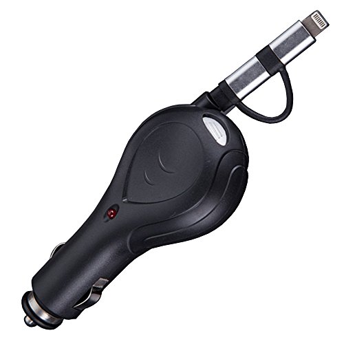 USB Car Charger,2 In 1 Tangle-free Lighting Retractable Cable Vehicle USB Car Charger (Black)