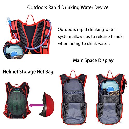 -. Feature : 【Multifunction 20L Riding Backpack】-- Including strength handbag, original multi-function mobile phone bag, master compartment zipper, master cabin, helmet adjustment buckle, sub tank, side expansion tool, bottom capacity tools, helmet rain cover, side expansion cabin, night safety Reflector. / 【Lightweight Design】-- Lightweight design originated in the automotive industry design, is now the trend of outdoor sports, through the layered design and material changes, thereby reducing the weight of the product. / 【Removable Helmet Net Pocket】-- On the one hand, when you do not use a helmet, you can put your helmet in this detachable helmet net pocket; the other hand, when you can not use the net pocket, you can also separate it separately. / 【Backpack Water-wash Quick Dry】-- Sport riding backpack, using waterproof fabric, quick to keep the backpack water-wash clean, you can also sweat dry up, at the same time, and can also make the sweat that second sport generated quickly dry up. / 【Great Ideal Choice】 for Hiking, Traveling, Camping, Riding Bike, Playing Basketball and Outdoors other holidays. Riding Necessary Gear.