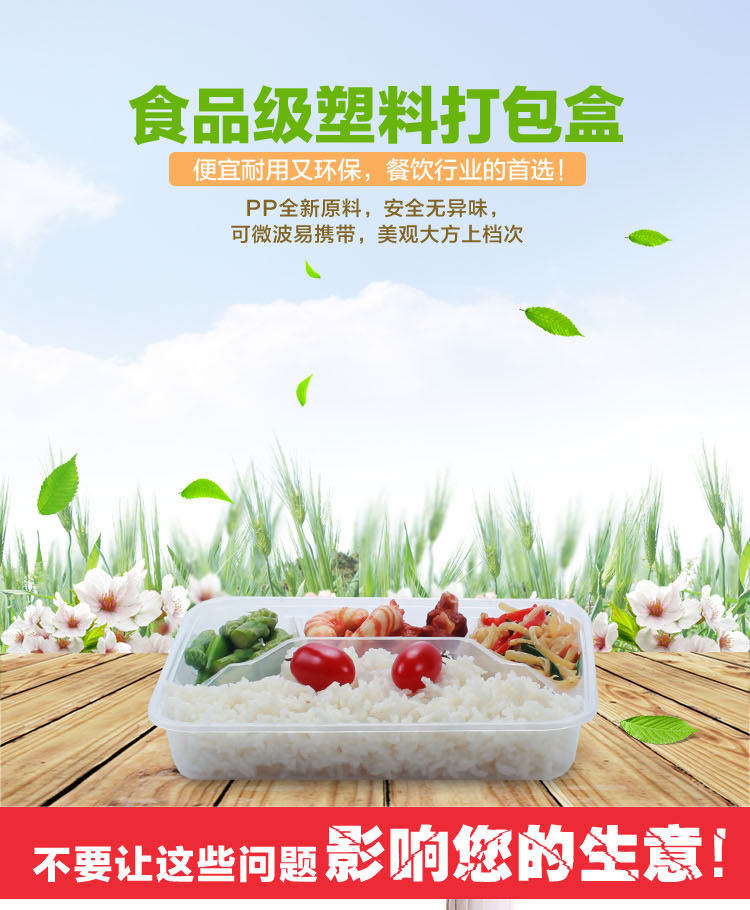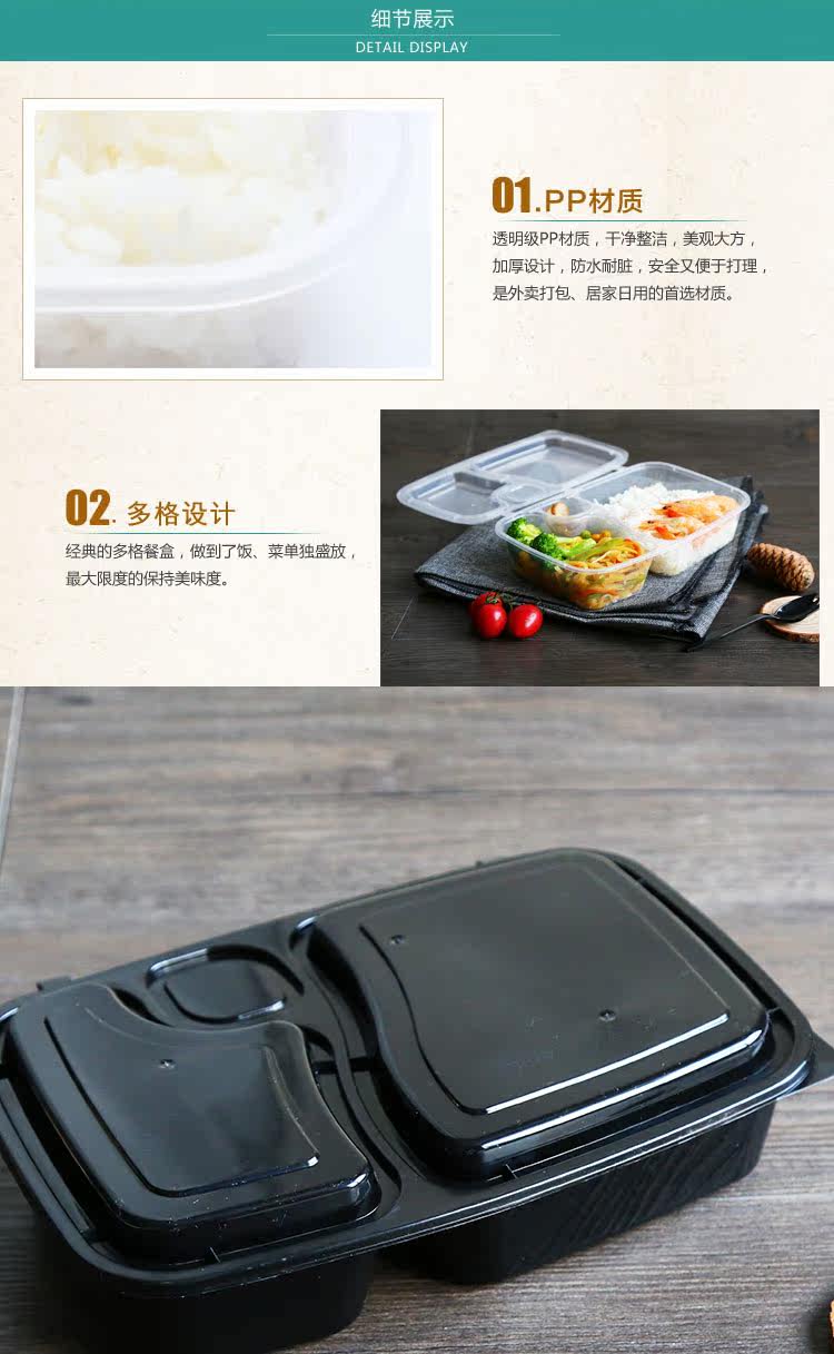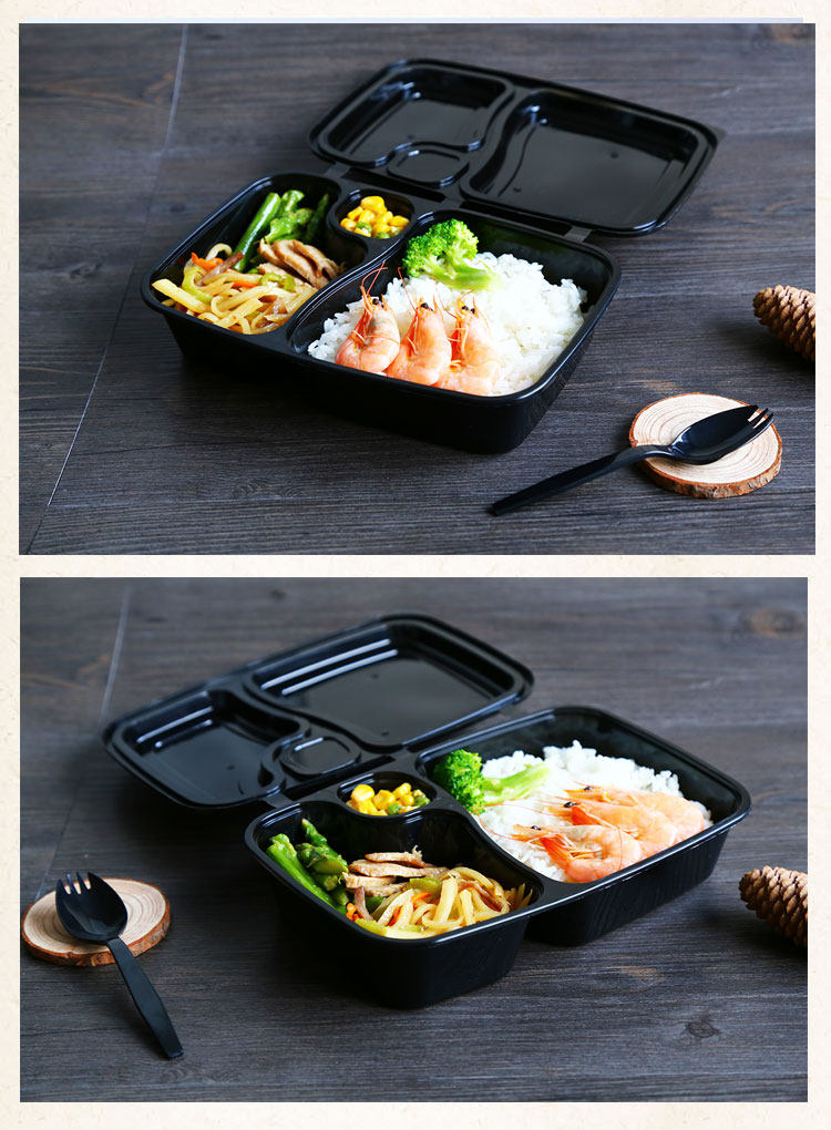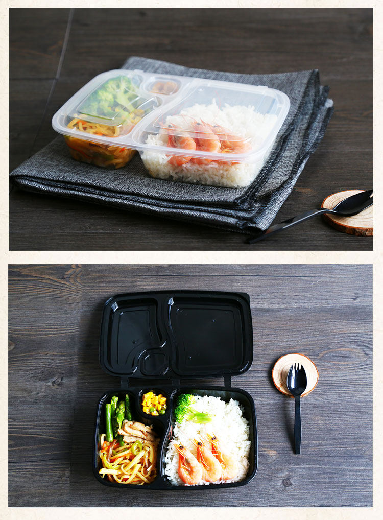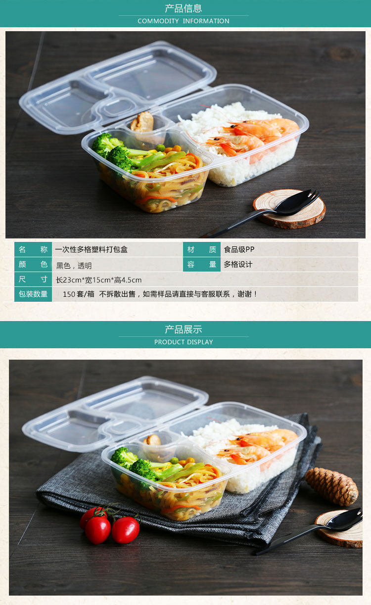 一次性餐盒饭盒双格带小菜方形打包盒塑料保鲜盒高端加厚外卖盒