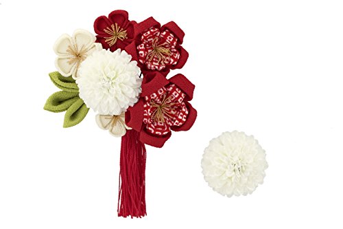-. Title : 髪飾り つまみ細工 2点セット 赤 レッド 白 ホワイト ピンポンマム 桜 花 鹿の子 縮緬 撚り房 房飾り コーム Uピン 成人式向け 卒業式向け 振袖向け 袴向け ヘアアクセサリー 日本製