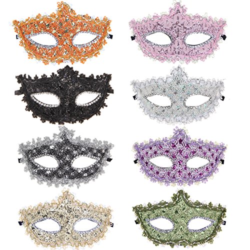 -. Feature : The lot is a set of ten. different colors. / 8 colors (orange,red,gray,gold,pink,white,purple,green) / High Quality,Masks are made with light weight eco-friendly materials / One size fits most, mask can be hand adjusted for a better fit / Perfect for all masquerade events: Masquerade ball, prom, wedding, carnival, etc.