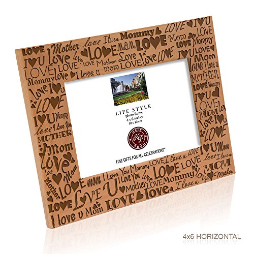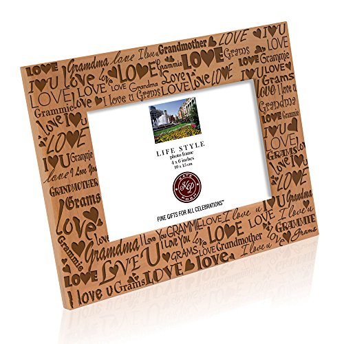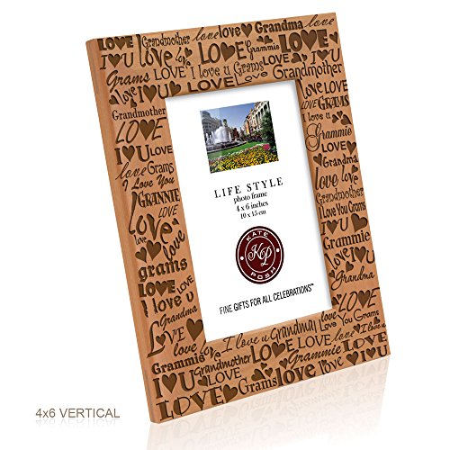 -. Binding : Kitchen -. Brand : Kate Posh -. Color : Natural Real Wood -. Feature : Top-quality natural wood. Engraved (carved, not P.R.Inted) / Orientation Option: Horizontal (Landscape) photo / Picture Frame Measures: 6 1/2" x 8 1/2" and holds a 4" x 6" photo / Curved beveled edges. Complete with glass front. Back stand easel for table display. Wall-hanging clips for wall mounting / Exclusive design by Kate Posh - All frames are hand-crafted by artisans in our California facility -. IsAutographed : 0 -. Label : Kate Posh -. Manufacturer : Kate Posh -. ProductGroup : Home -. ProductTypeName : HOME -. Publisher : Kate Posh -. Studio : Kate Posh -. Title : Kate Posh - Mom and Grandma - Wood Picture Frame