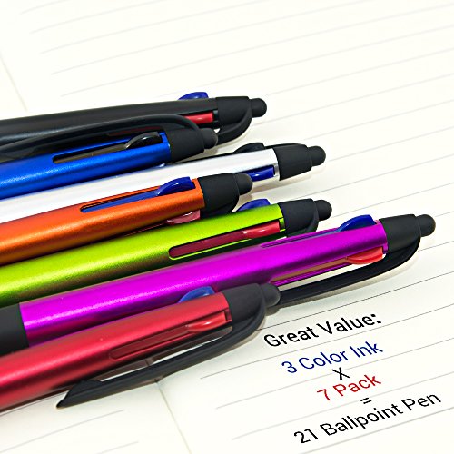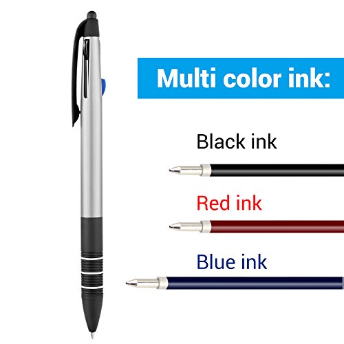 Multi functional: The stylus pen one side is 3 color (Black, Blue, Red) ink ballpoint pen, other side is capacitive stylus