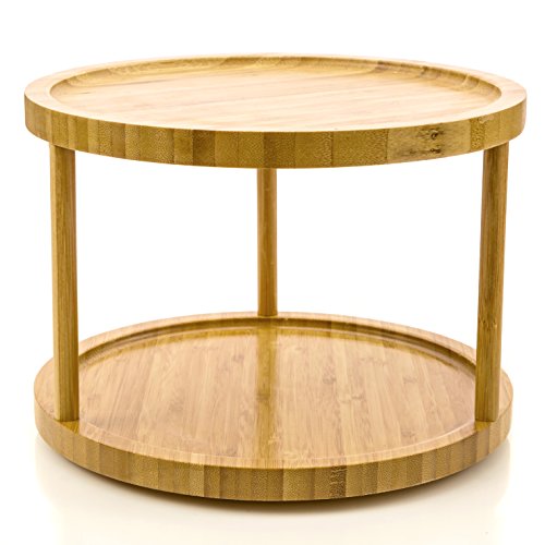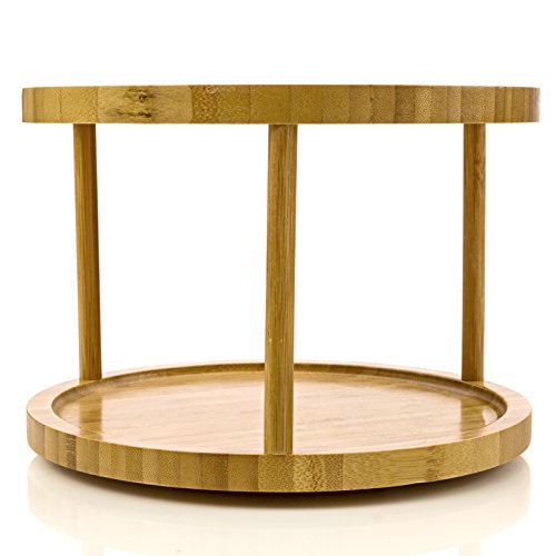 Turning Shelf 2 Tier For Kitchen Spice Rack Spice Holder Counter Top Approx 10-inch Made of Organic Bamboo by Intriom Bamboo Collection