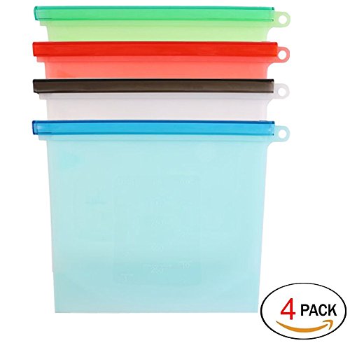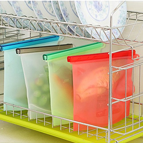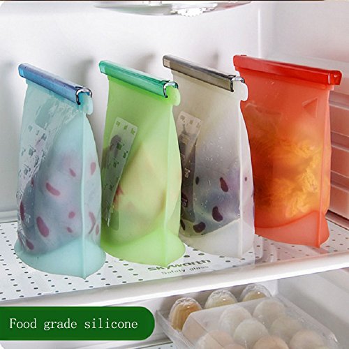 LGDehome 4Pcs Reusable Silicone Food Preservation Bag for Vegetable Meat Fruits Airtight Container, Kitchen Cooking Seal Storage Bags 4 Colors( Red Blue Green White)