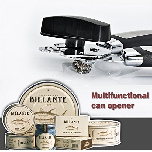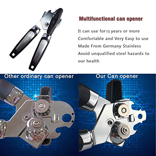 Manual Can Opener Stainless Steel Jar Opener Multi-Purpose Bottle Opener Anti-Slip Portable by Jabriel (Black)