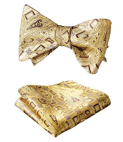 -. Title : SetSense Men's Paisley Check Jacquard Woven Self Bow Tie Set