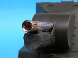 BT-7の派生車種でありながら、大部分が新規パーツとなり、 その異形と共に、話題かつ人気となった、タミヤのBT-42。 その異形を際立たせる砲塔と搭載される114mm砲身は絶好の アイキャッチですが、それを最大限引き立たせる極上の金属砲身セット! 何と言ってもマズルブレーキの孔の数は216!それを仔細に再現! キットとのフィット感もばっちりです!