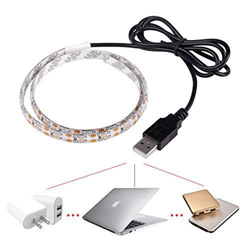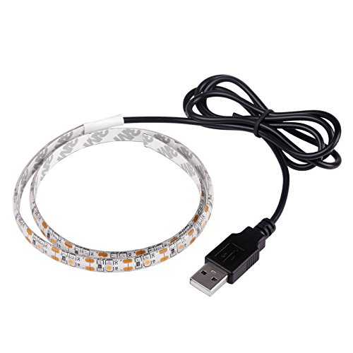 ONEVER Flexible Led Strip Lights with USB Cable for TV Computer Desktop Laptop Background Home Kitchen Decorative Lighting, SMD 3528 50CM Warm White