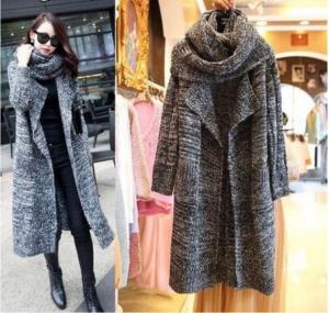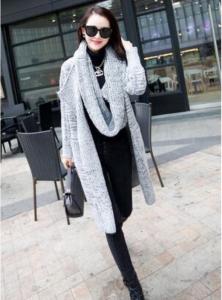 "ロングニットカーディガン 羽織り ガウン ニットカーデ スヌード付き マフラー セット アウター コート 秋冬 ニット セーター