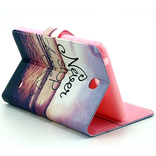 Galaxy 4 7.0 inch Case,Dteck(TM) Colorful Painting Design PU Leather Flip Smart [Card/Money Slots] Shockproof Stand Wallet Cover for Samsung Galaxy Tab 4 7.0 Inch SM-T230/T231/T235 (02 Never Stop)