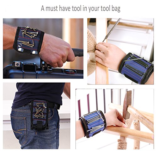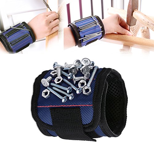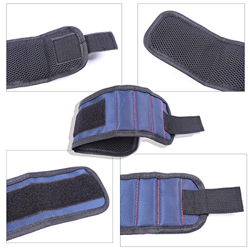 Magnetic Wristband, Wrist Strap with Super Strong Magnets for Holding Screws, Scissors, and Small Tools (Blue)