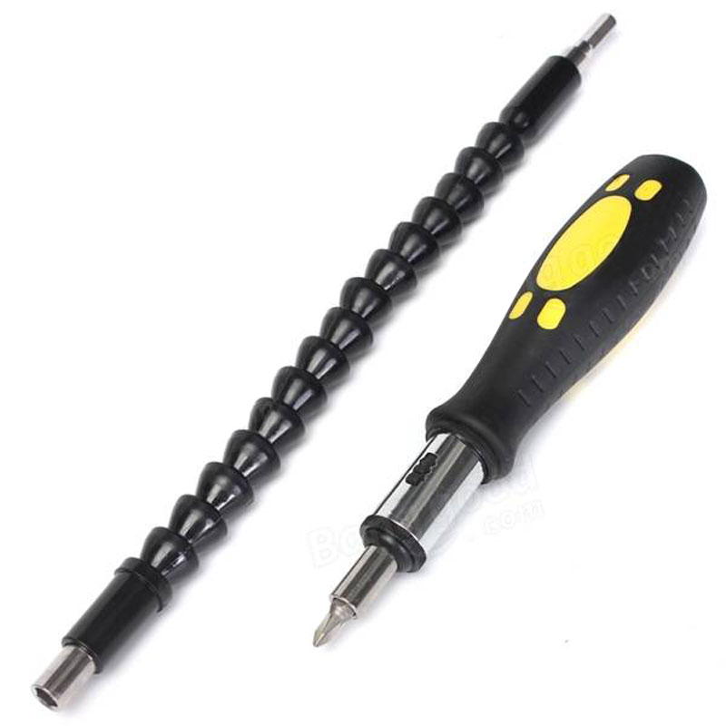 Includes Snake Bit universal extender, ratchet tool and 6 circular driver heads.