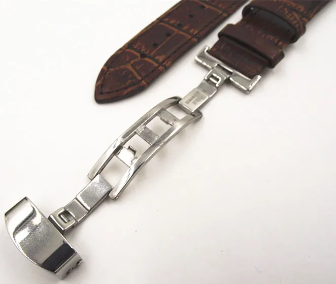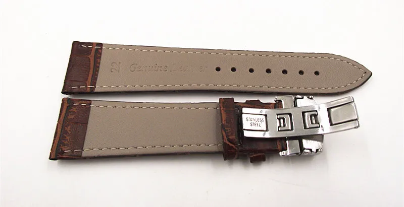 10 개/몫 18 미리메터 20 미리메터 22 미리메터 정품 가죽 시계 밴드 시계 스트랩 방수 가죽 스테인레스 스틸 버클-브라운 컬러