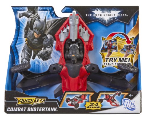 -. Binding : Toy -. Brand : Mattel -. EAN : 0746775113193 -. Feature : Based on the hit new Batman film, The Dark Knight Rises / Gear up with Batman and fight the villains of Gotham City / Kids can instantly transform vehicles for multiple ways to battle / Rapidly transformation from tank into high-speed crusier / Collect all of the vehicles in Batmans QuickTek arsenal! -. IsAdultProduct : 0 -. Label : Mattel -. Manufacturer : Mattel -. Model : X2314 -. MPN : X2314 -. PackageQuantity : 1 -. PartNumber : X2314 -. ProductGroup : Toy -. ProductTypeName : TOYS_AND_GAMES -. Publisher : Mattel -. ReleaseDate : 2012-05-27 -. Studio : Mattel -. Title : Batman The Dark Knight Rises Quicktek Combat Bustertank Vehicle -. UPC : 746775113193 -. Warranty : 1 year warranty against manufacturer defects