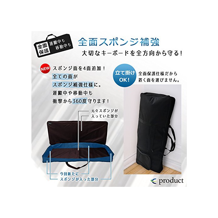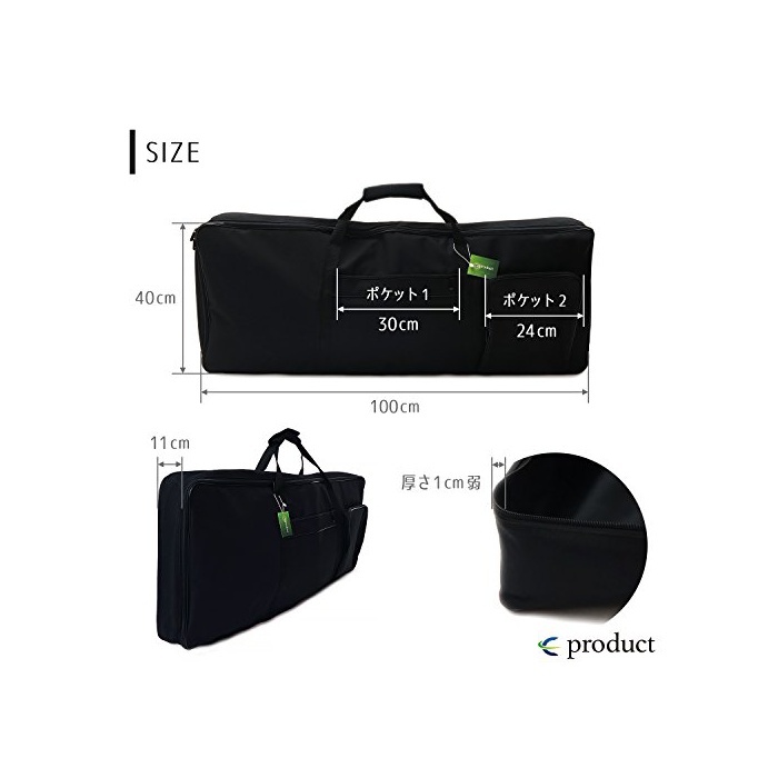 Product product 키보드 케이스 61건반 캐리 케이스 배낭 백 개량 충격 완화 3 way 소품 포켓 첨부 와 (100cm,블랙)
