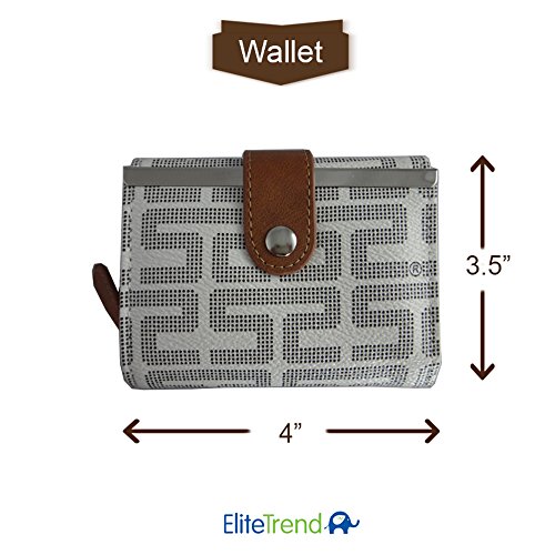 -. Brand : Elite Trend -. Department : womens -. Feature : ¥ Elite Trend Signature Series - Unique & Beautiful Design with Registered Trademark and Pattern. Fashionable and Designer Style -naturally anti-scratch and durable. / ¥ Amazing Aesthetic design to complement your style. Perfectly sized for portability. Shiny gold-color hardware, heavy duty zipper and detailed contrast stitching brightens up the wallet. / ¥ Compact design due to its 4 credit card slots, including 1 clear plastic photo slot. 2 compartments for cash. Dimensions: 4."L x 3.5"W x 1.1"H .The Weight is 4.4 Ounces / ¥ Color Showing in other variation is to show the different angles of the bag. We will ship the one you purchased. / ¥ NO RISK PURCHASE - 100% Money Back Guarantee, 100% Satisfaction Guarantee. PLEASE BE ADVISED: due to monitor variations, color may appear slightly different! -. PackageQuantity : 1 -. ProductGroup : Shoes -. ProductTypeName : HANDBAG -. Title : Women's Small Compact PU Leather Wallet with Zipper Credit Card Pocket ID Window by Elite Trend