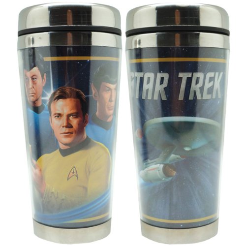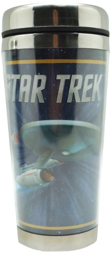 -. Feature : 16 oz. Travel Mug measures 7" H / Stainless steel inner, acrylic outer; not dishwasher safe / Decorative wrap-around images / Officially licensed Star Trek product & design / A great collector's gift