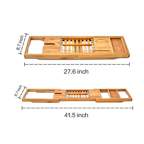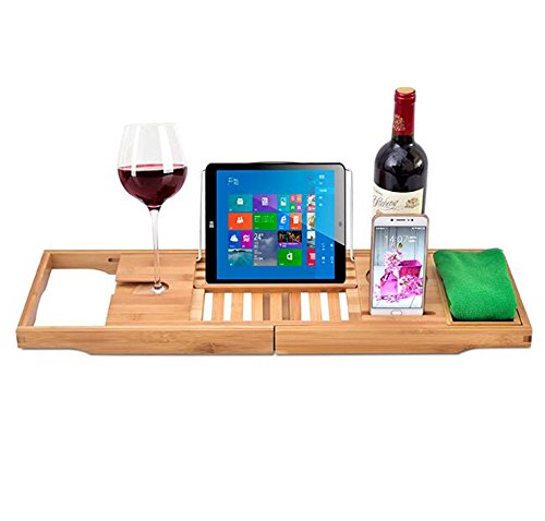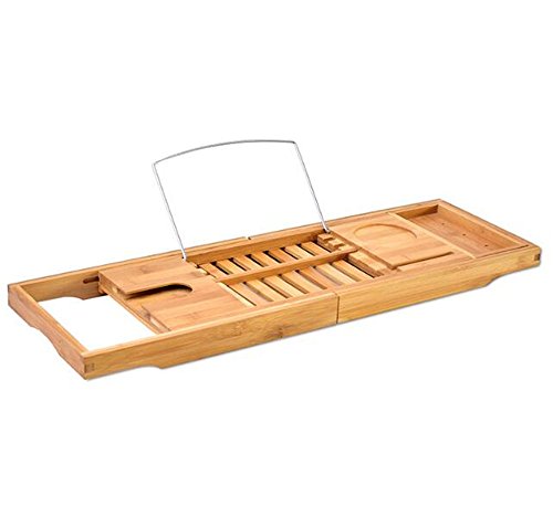 Bamboo Bathtub Caddy Extendable Wood Sides Built-In Book or Tablet Frame Built-In Wine Glass Holder Smartphone Rest Natural, Ergonomic Design The wide, oversized design ensures our caddy can extend to fit a wide range of tubs, including clawfoot, standard, rectangle, round or narrow. Better yet, it's made from pure bamboo, making it naturally more sustainable and hypoallergenic. A wonderful birthday, anniversary, holiday or wedding gift, get one for yourself or give one to a friend or loved one who enjoys long, relaxing baths. 0 |