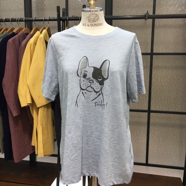 귀엽고 센스있는 강아지 캐릭터로 포인트를 준 면 100 % 티셔츠 소개해드려요~ 단독으로도, 아우터안에도 포인트주기 좋은 데일리 티셔츠에요! 톡톡한 코튼100%의 소프트한 소재감으로 맨살에 닿여도 거슬림없이 편하게 입기좋아요^^ 부담스럽지않게 적당한 핏감과 베이직 반팔 티셔츠라 어느 룩에나 매치업하기 좋았구요캐쥬얼하게 매치했을 때 정말 예뻐요~ 여름에 어울리는 아이보리,스카이블루 색상 두가지입니다. 총장길이는 55사이즈 기준으로 63cm입니다.