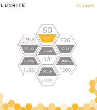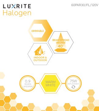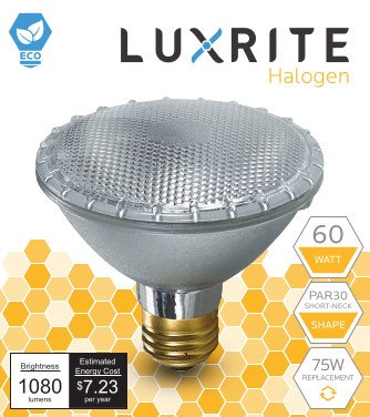 Luxrite LR20623 (6-Pack) PAR30 Eco Halogen Short Neck Light Bulb, 60 Watt (75w replacement) Dimmable, 40° Flood Beam Spread, 2900K, 1080 Lumens E26 Base, For Indoor/outdoor use.