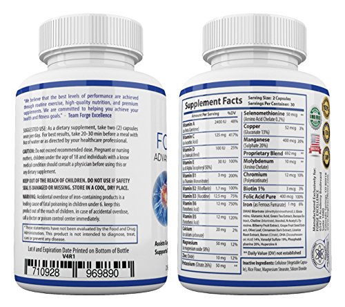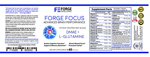 Besides its potent DMAE + L-Glutamine combination, Forge Focus also contains an explosive cocktail of vitamins, minerals and nutrients: vitamins A, C, D, E, B1, B2, B3, B5, B6, calcium, magnesium, zinc, potassium, iron, and more!