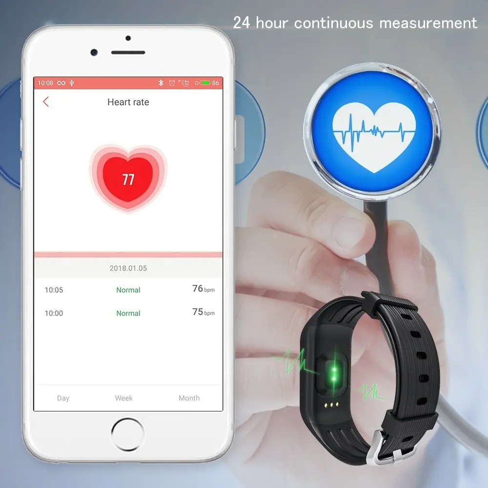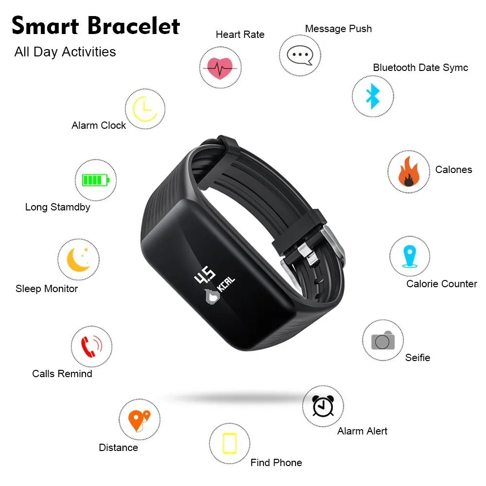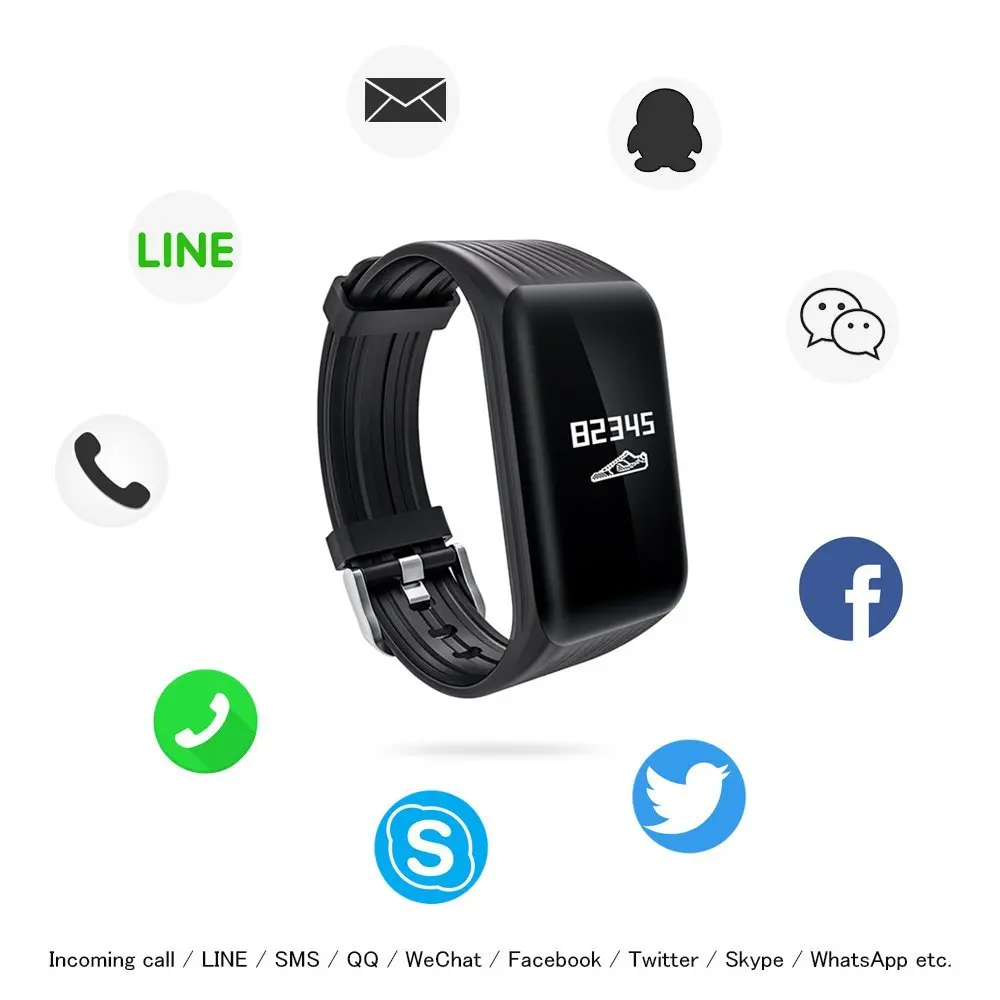 Function: Message Reminder,Passometer,Activity Tracker,Alarm Clock,Fitness Tracker,Call Reminder,Sleep Tracker,Heart Rate Tracker,Social Media Notifications