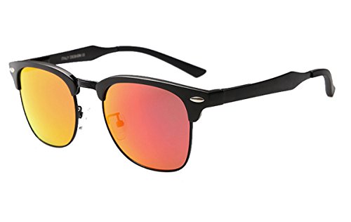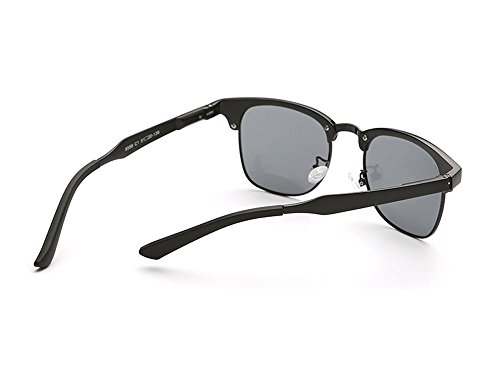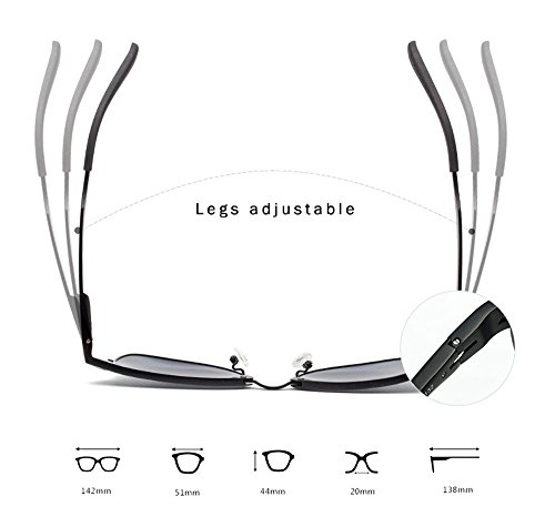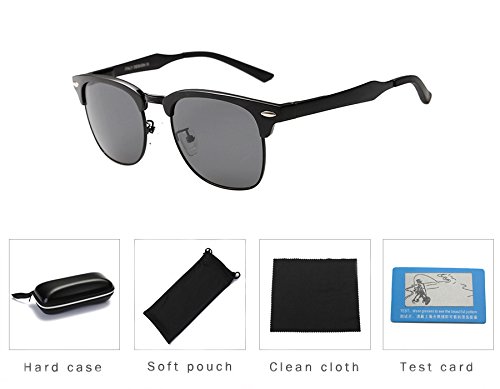 High-tech aluminum-magnesium alloy, HD TAC polarized lens, careful and meticulous process to reproduce the elegance and refinement of classic clubmaster sunglasses. Metal hinges strengthening treatment, the tightness of the frame legs can be adjusted by the screw made of the special material and soft latex nose pad make the glasses more secure and comfortable. UV400 protection.