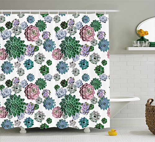 Cactus Decor Shower Curtain by Ambesonne, Colorful Pattern of Succulent Plants Tropical Foliage Natural Garden Decor, Fabric Bathroom Decor Set with Hooks, 70 Inches, Multicolor