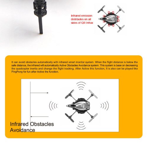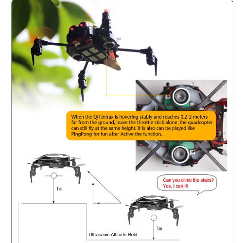 - Feature : Not Children Toy. Operator must have certain knowledge of RC / Ready to Fly kit with Full Size 4CH Transmitter DEVO 2402D / Advanced 6-Axial Flight Stabilizing System ensures stable flight / Infrared Obstacles Avoidance System helps aircraft minize crash / Ultrasonic Altitude Hold System enables aircraft keep flying height