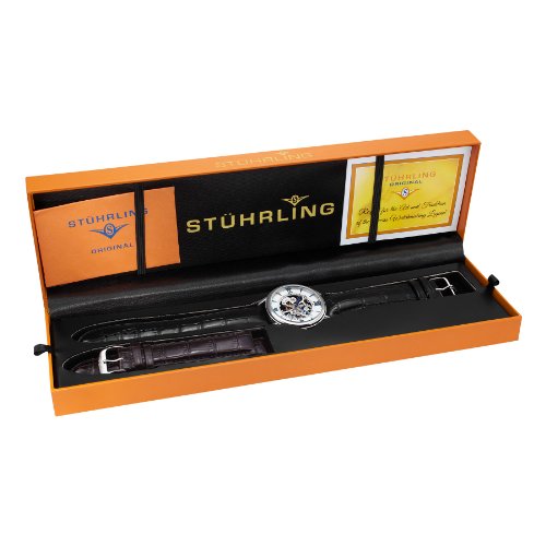 -. Title : Stuhrling Original Men's 458G2.33152SET Classic Delphi Chamberlain Skeleton Silver Dial Watch Set