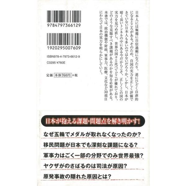 【商品説明】 定価(税込み):821円 値引き:5% OFF 日本は世界から見てどのように評価されているのか──政治、経済、文化といったさまざまな側面から日本の実力を検証し、われわれ日本人が見落としがちな、この国の誇るべき点、恥ずべき点を明らかにしていく! バーゲンブック 新品 特価 格安 社会 社会問題 文化 経済 ソフト 政治 日本 | |
