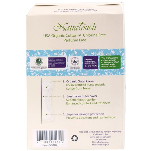 NatraTouch is created by Apropos out of concern for women's heath. Our Mission is to provide natural products that don't degrade consumer health. NatraTouch Pad and Pantiliner are high quality sanitary napkin with a top sheet made from Control Union certified 100% organic cotton grown in Texas, USA. NatraTouch can be safely used by people with sensitive skin and allergies to chemical ingredient.