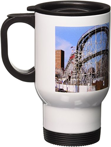 3dRose Coney Island Roller Coaster Travel Mug, 14-Ounce, Stainless Steel