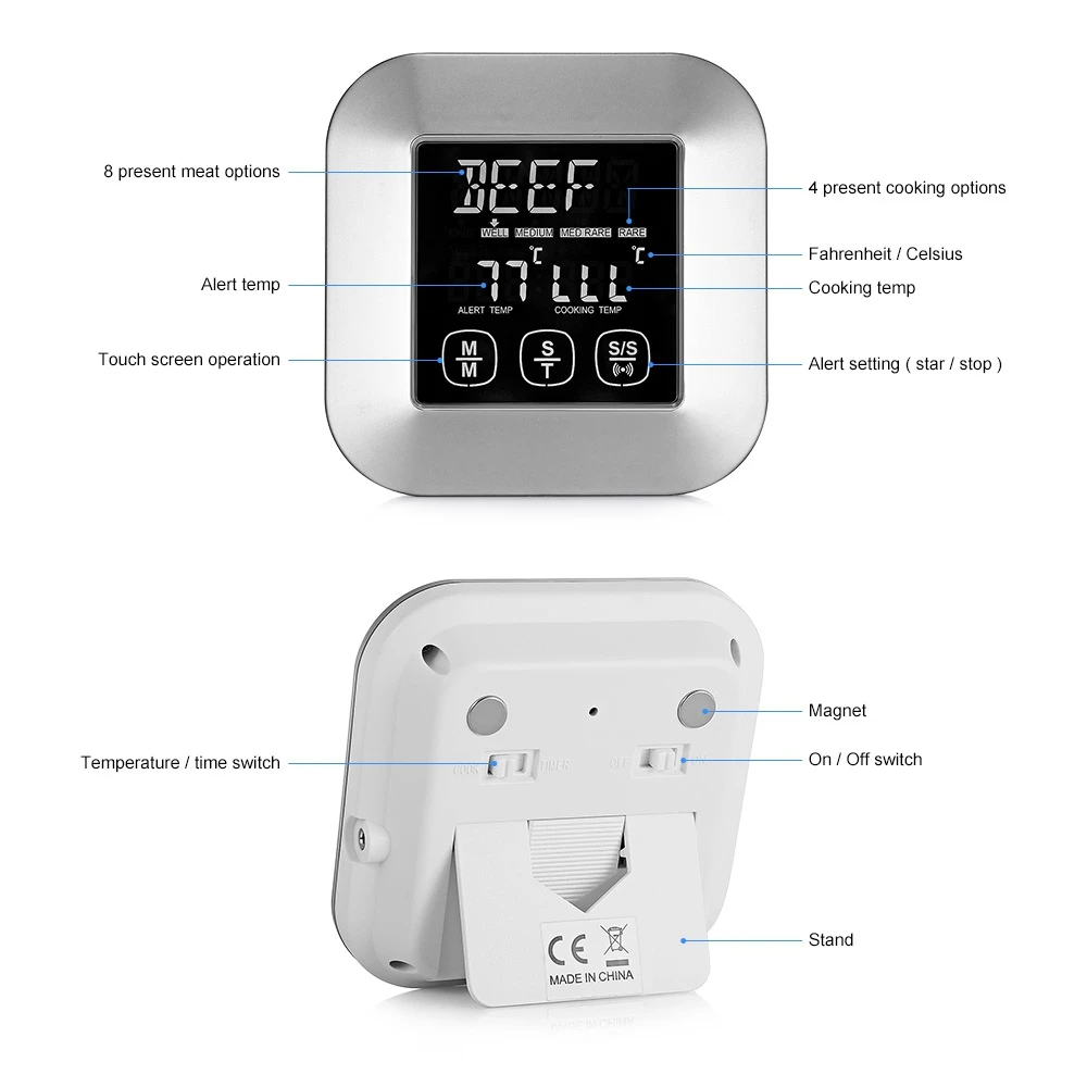 Package Contents:1 x Digital Meat Thermometer, 3 x Stainless Steel Probes