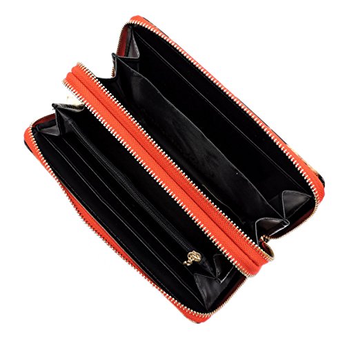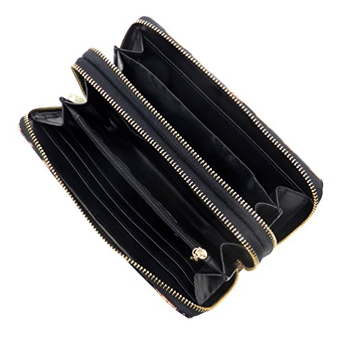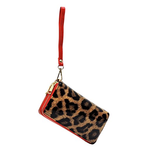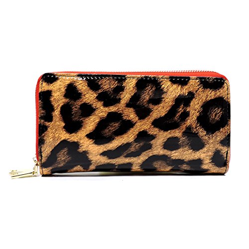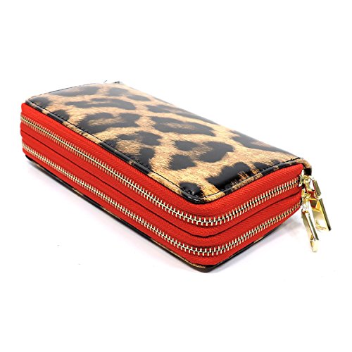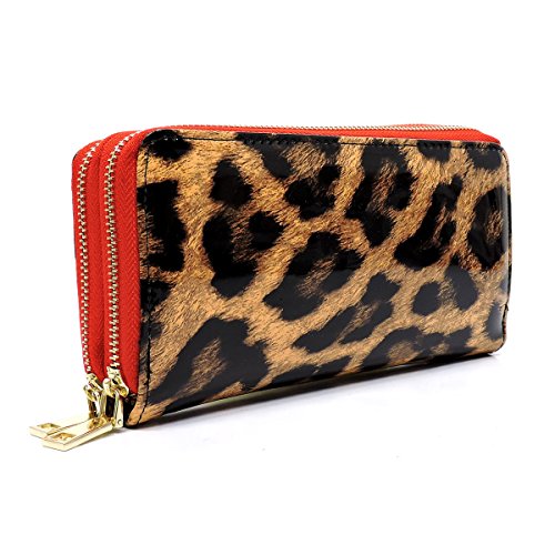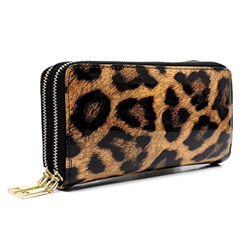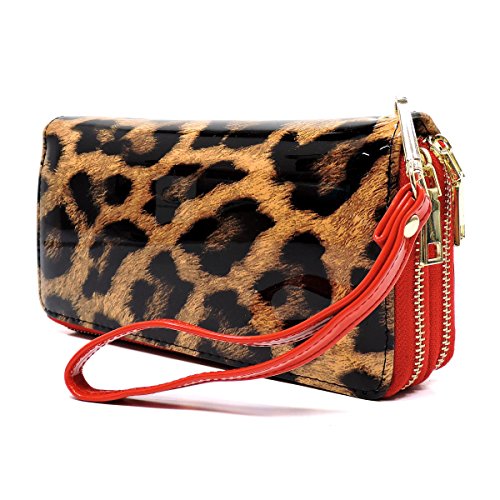 -. Title : Faux Patent Leather Glossy Leopard Double Zip Around Clutch Wallet Wristlet