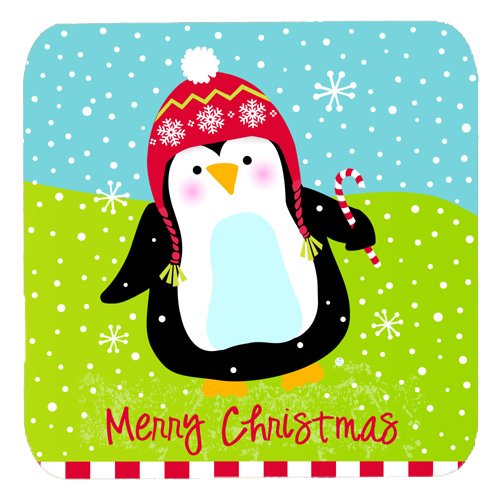 Caroline's Treasures VHA3015FC Merry Christmas Happy Penguin Foam Coaster (Set of 4), Multicolor, 3.5"
