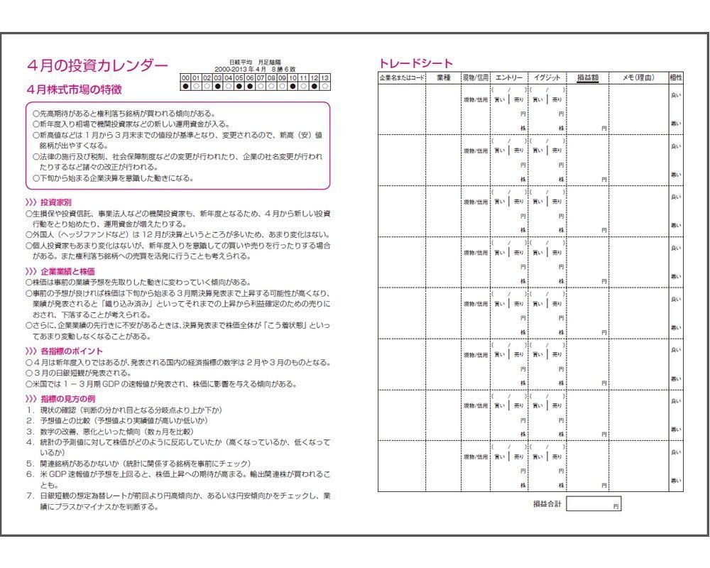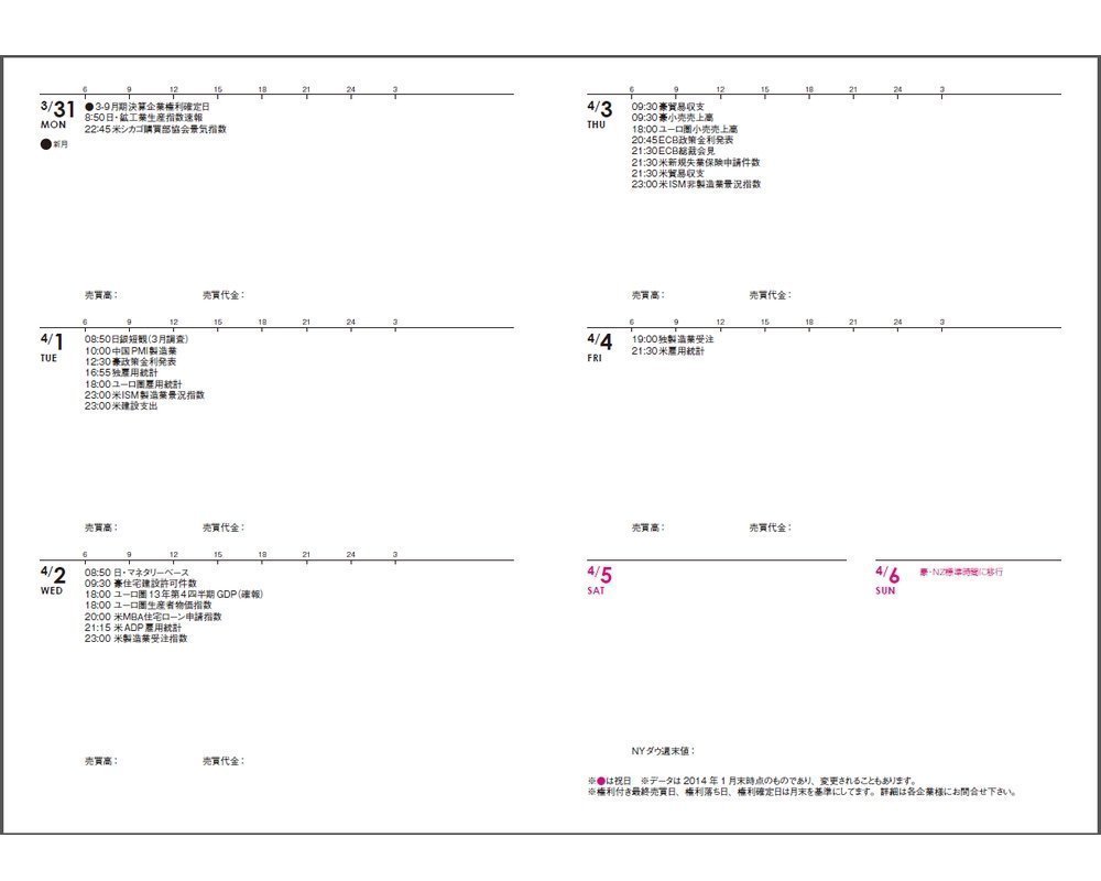 Because it is not doing daylight, it is somewhat badly usable. N225 Hino Vi PER EPS Since we record dollar every day, we are in trial and error how to use monthly pages and weekly pages. The explanation of the index at the end of the book is compact and covers a lot and it is convenient, but it would be nice if there is description of the timing etc. of the presentation. For example, there is a hint on how to view indexes, such as seeing the Federal Reserve Bank of the Federal Reserve Bank of Japan's ISM manufacturing as a monthly move, and I think about such work pages myself.