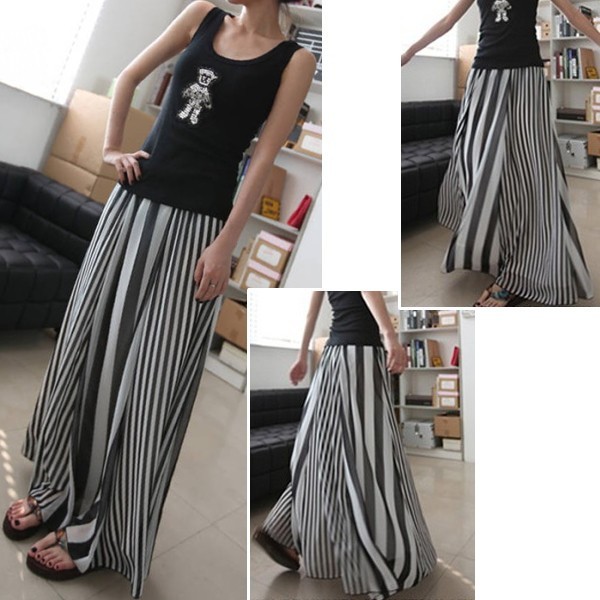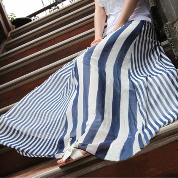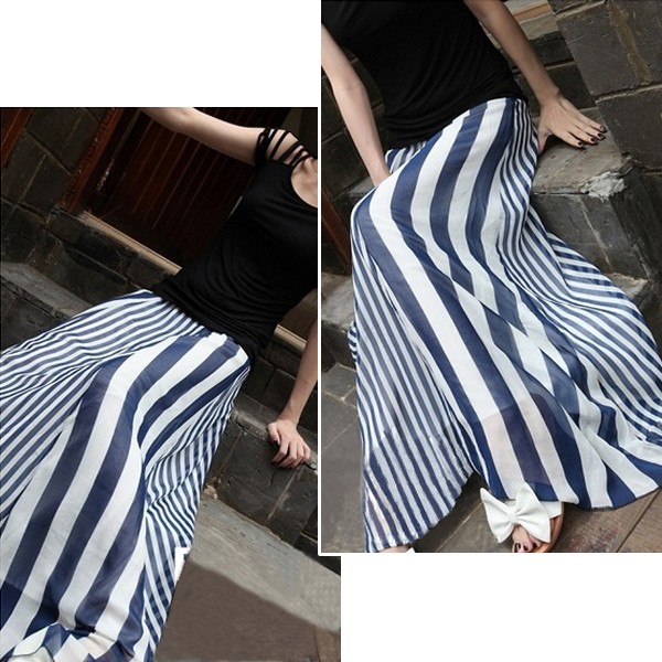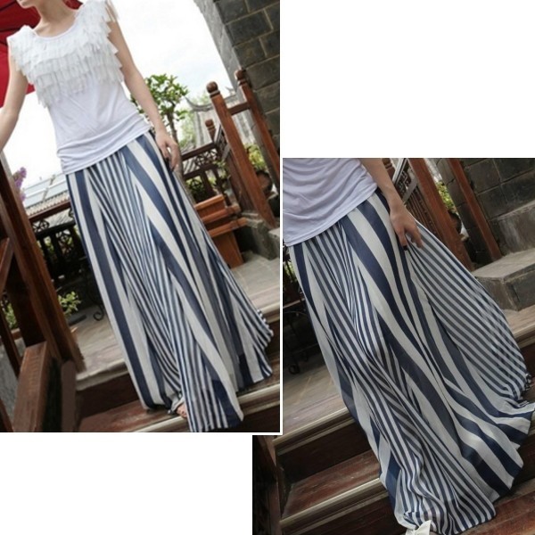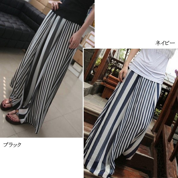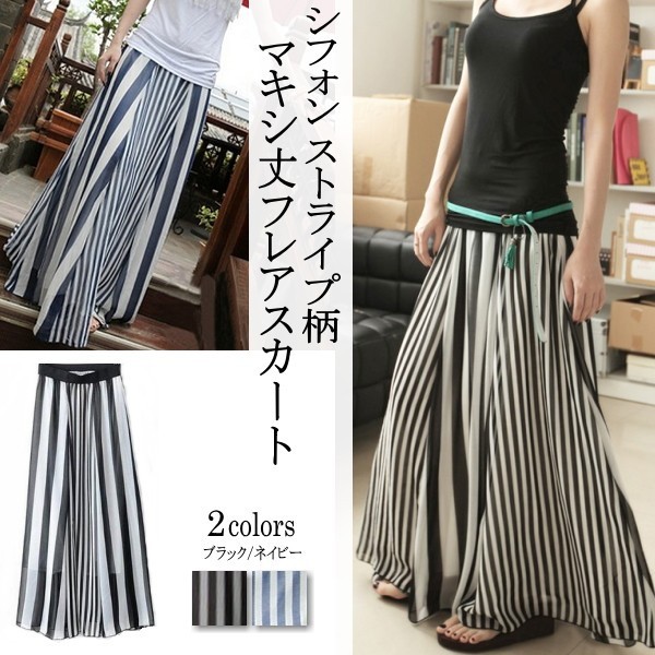 | 商品名 | シフォン ストライプ柄 マキシ丈フレアスカート |
