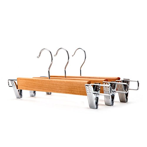 -. Title : Polished Finish Wooden Slacks Skirt Hangers, Pant Trousers Hanger with Two Adjustable Anti-Rust Clips, 10-Pack