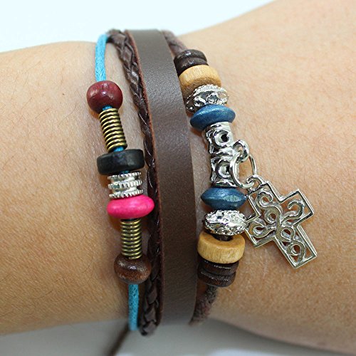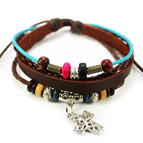 Charm Metal Cross Pendant Multistrand Leather Adjustable Wrap Bracelet