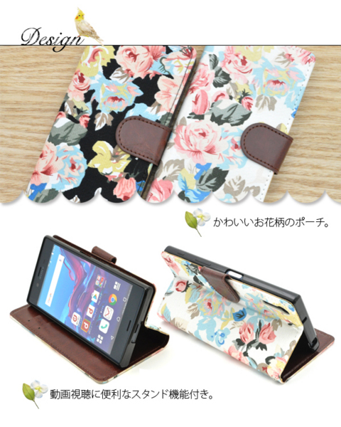 外側は花柄、内側は落ち着いたレザーデザインです。