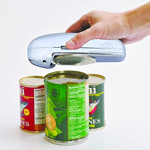 Studio : Handy Can Opener Publisher : Handy Can Opener Product Description Your favorite Handy Can Opener now available in a stylish and modern Chrome finish. The As Seen on TV Handy Can Opener opens Cans in Seconds! Just place the Handy Can-Opener on any can, Press the Start Button and watch as the Opener independently moves around the can-opening it in just seconds! It's that easy! Best of all the lid magnetically lifts off, leaving no sharp edges! *Important: The Hands-Free can opener will NOT work on odd shaped cans. Never use the can opener on the bottom side of cans. Make sure to use brand new high quality batteries for maximum usage and optimum performance. 0